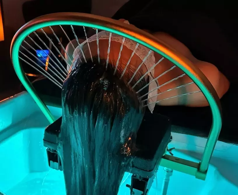 consultation shoulder, kneck massage heated eye mask stimulating head massage with oil exfoliating scalp scrub double scalp cleanse scalp relaxation with tools conditioning mask treatment with relaxing massage steam therapy facial using luxury eve Taylor products including cleanse, exfoliate, mask, and face massage halo relaxation therapy leave-in conditioning treatment light blow dry (styling not included)